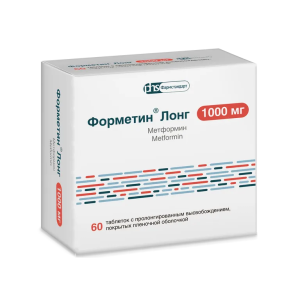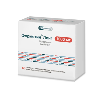 Форметин Лонг таблетки с пролонгированным высвобождением покрытые плёночной оболочкой 1000мг №60