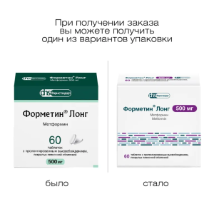 Форметин Лонг таблетки с пролонгированным высвобождением покрытые плёночной оболочкой 500мг №60