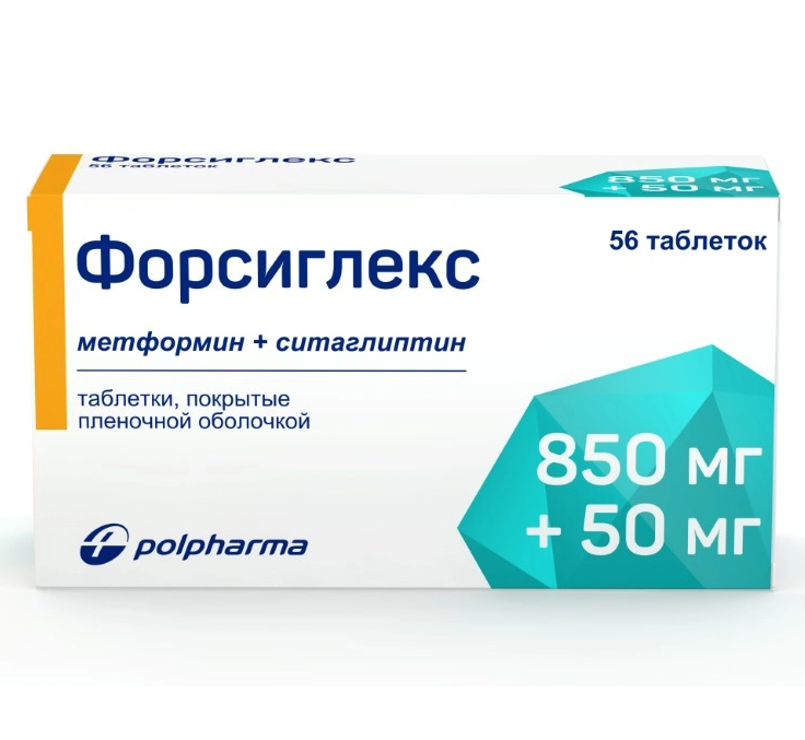 Препарат Форсиглекс представляет собой комбинацию двух гипогликемических препаратов с взаимодополняющим (комплементарным) механизмом действия, предназначенную для улучшения контроля гликемии у пациентов с сахарным диабетом 2 типа: ситаглиптина, ингибитора фермента дипептидилпептидазы-4 (ДПП-4), и метформина, представителя класса бигуанидов.