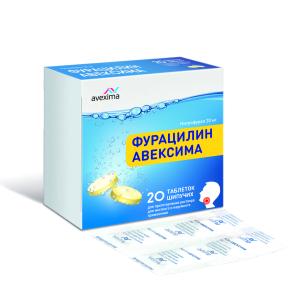 Фурацилин Авексима таблетки шипучие для приготовления раствора для местного и наружного применения 20мг №20