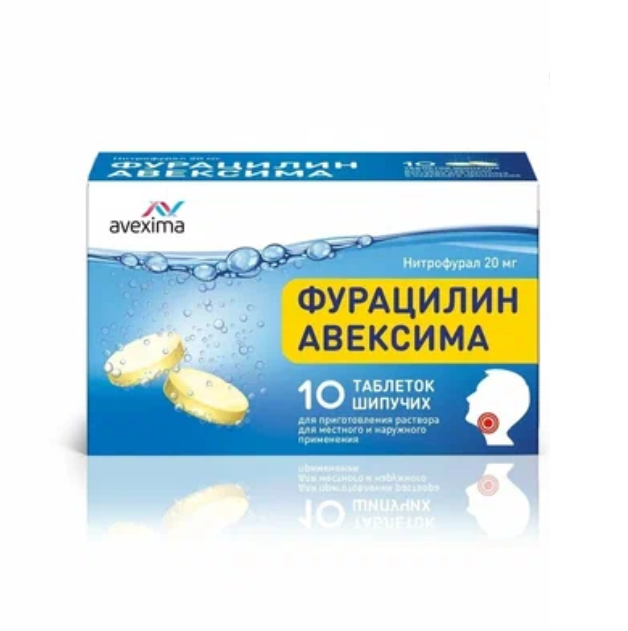 Фурацилин Авексима таблетки шипучие для приготовления раствора для местного и наружного применения 20мг №10
