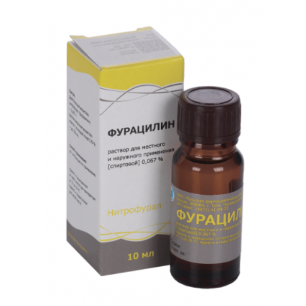Фурацилин раствор для местного и наружного применения спиртовой 0,067% флакон 10мл