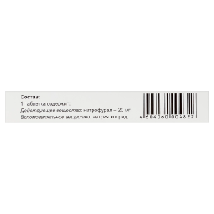 Нитрофурала ;в пересчёте на 100 ;% вещество — 0,02 ;г;