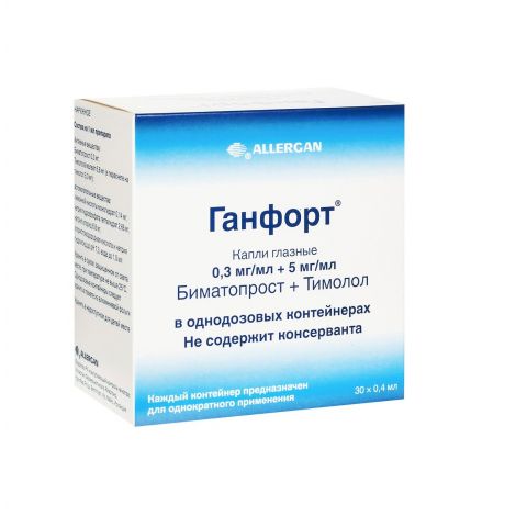 Ганфорт капли глазные 0,3мг+5мг/мл однодозовые контейнеры 0,4мл №30