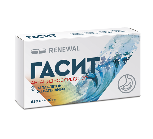 Антацидный препарат местного действия. Таблетка препарата Гасит содержит антацидные вещества — кальция карбонат и магния карбонат, которые обеспечивают быструю и продолжительную нейтрализацию избыточной соляной кислоты желудочного сока, тем самым оказывает защитное действие на слизистую оболочку желудка.