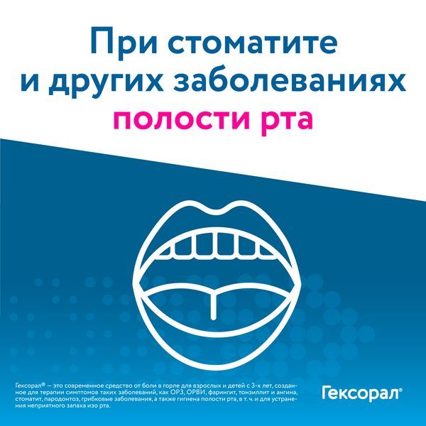 Лекарственный препарат «Гексорал®», раствор для местного применения можно применять для полоскания полости рта и глотки только в том случае, если больной может выплюнуть раствор после полоскания.