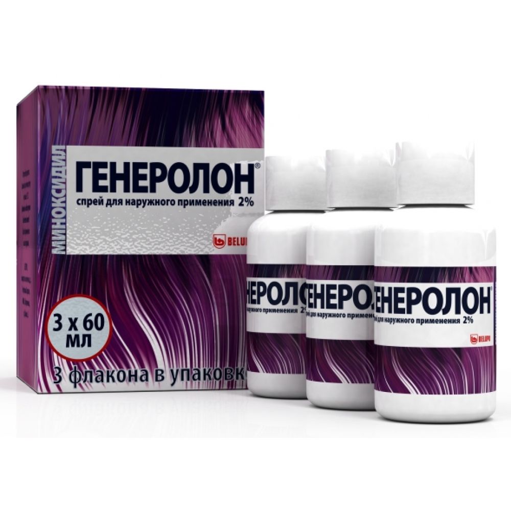 При местном применении миноксидила стимулирует рост волос у лиц с андрогенной алопецией (поредением волос, облысением). Улучшает микроциркуляцию, стимулирует переход волосяных клеток в активную растущую фазу, изменяет воздействие андрогенов на волосяные мешочки. Уменьшает образование 5-альфа-дегидростерона (возможно, опосредованно), который играет существенную роль в формировании облысения. Наилучший эффект оказывает при небольшой давности заболевания (не более 10 лет), молодом возрасте пациентов, лысине в области темени не более 10 см, наличии в центре лысины более 100 пушковых и терминальных волос. Проявление признаков роста волос отмечается через 4 и более месяцев применения препарата. Начало и степень выраженности эффекта могут колебаться у разных больных. 5 %-ый раствор препарата стимулирует рост волос сильнее, чем 2 %-ый растврр, что было отмечено по увеличению роста пушковых волос: После прекращения применения препарата Генеролон® рост новых волос приостанавливается, и в течение 3-4 месяцев-возможно восстановления исходного внешнего вида. Точный механизм действия препарата Генеролон® при лечении андрогенной алопеции неизвестен. Миноксидил неэффективен в случае облысения, вызванного приёмом лекарственного средства, неправильным питанием (дефицит железа (Fе), витамина A), в результате укладки волос в «тугие» причёски.