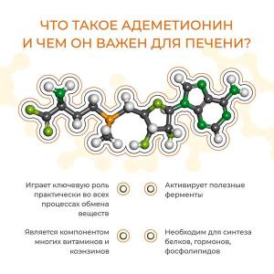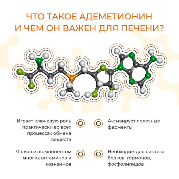 Адеметионин относится к группе гепатопротекторов. Оказывает желчегонное действие, обладает детоксикационными, регенерирующими, антиоксидантными, антифиброзирующими и нейропротективными свойствами. Описание активных компонентов: