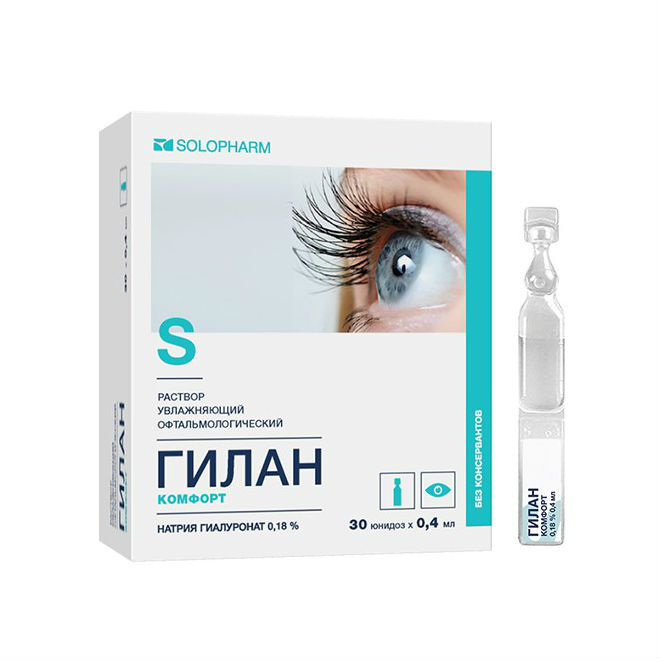 Одна тюбик-капельница (юнидоза) или флакон раствора Гилан Комфорт содержит: