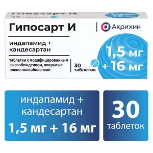 Гипосарт И таблетки с пролонгированным высвобождением покрытые пленочной оболочкой 1,5мг+16мг №30