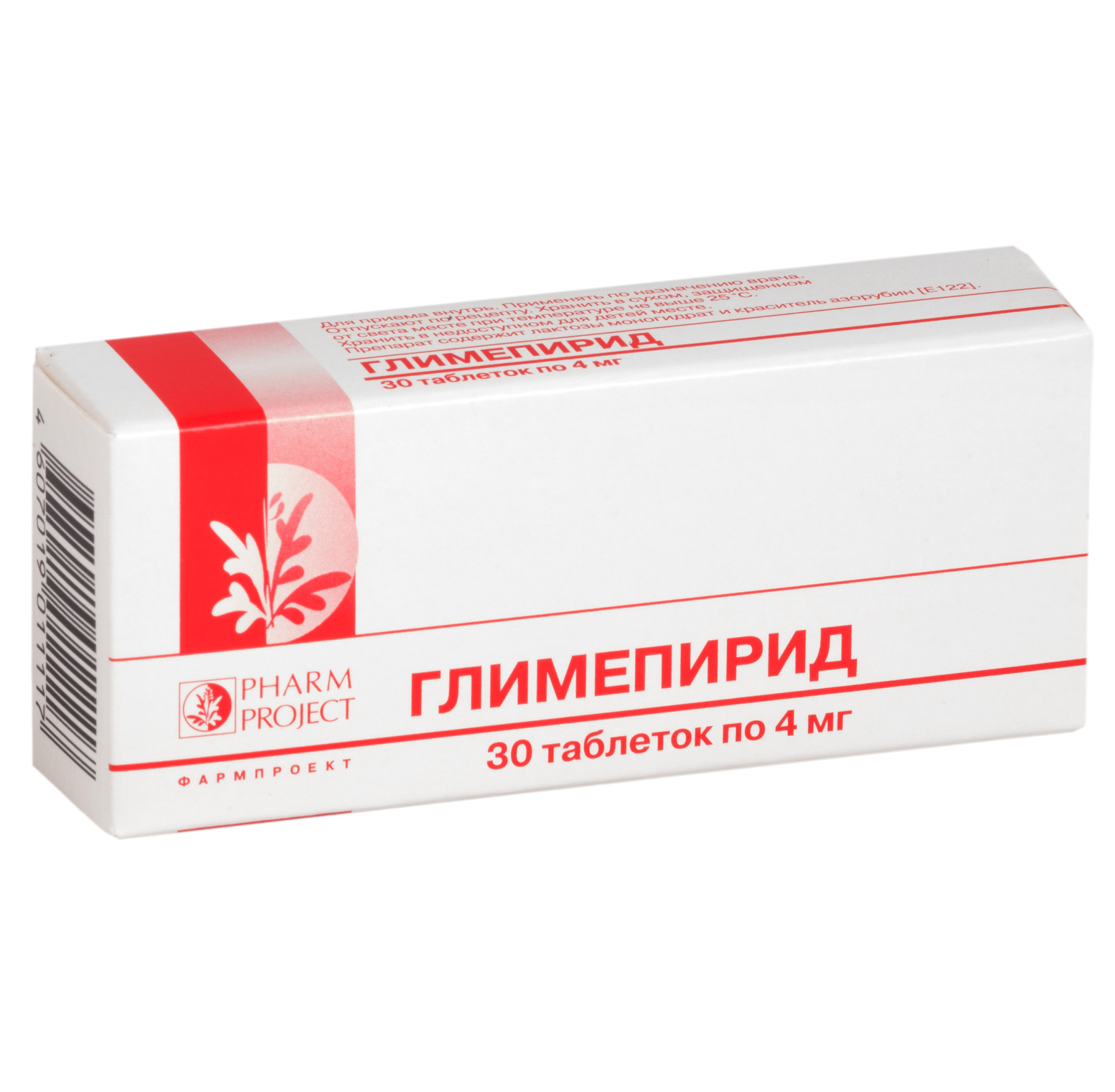 Активное вещество: глимепирид в пересчёте на 100 % вещество — 2 мг, 3 мг или 4 мг.