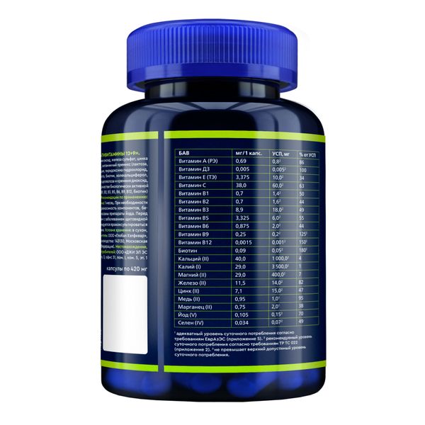 GLS Мультивитамины 12+9 капсулы 420мг №120