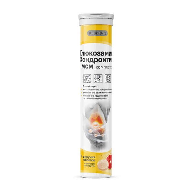 Глюкозамин Хондроитин МСМ BioForte таблетки шипучие с ароматом грейпфрута №17