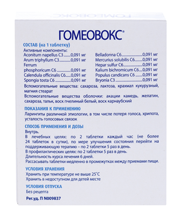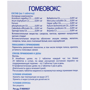 Гомеовокс таблетки покрытые оболочкой гомеопатические №100