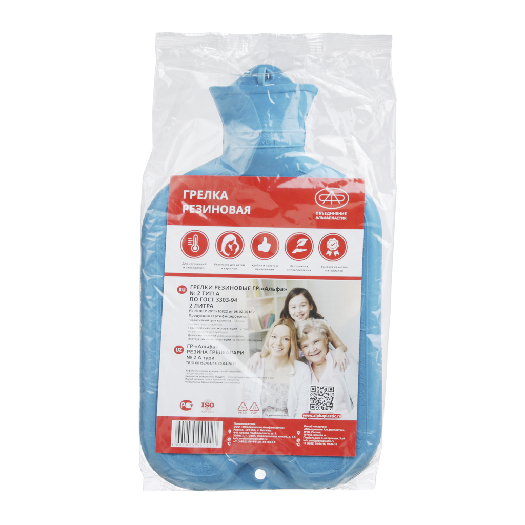 Грелка резиновая /ГР альфа/ТИП А3 - упакована в индивидуальный пакет с европодвесом.