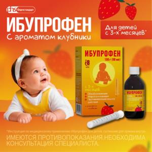 Ибупрофен суспензия для приема внутрь с ароматом клубники 100 мг/5 мл флакон 80мл