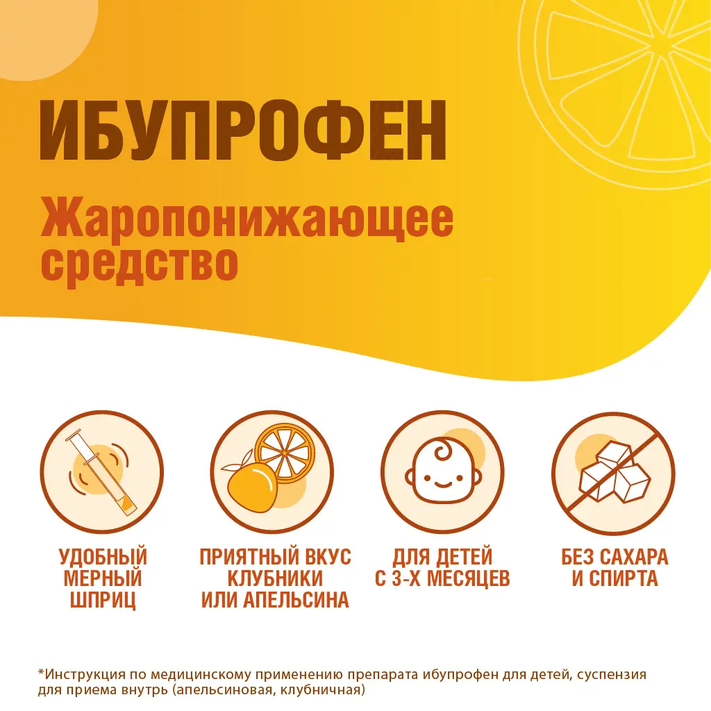 Ибупрофен суспензия для приема внутрь с ароматом апельсина 100 мг/5 мл флакон 160мл