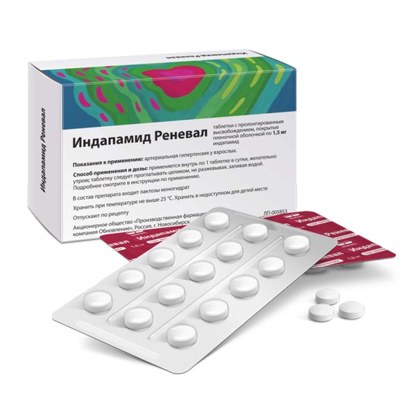 Индапамид Реневал таблетки с пролонгированным высвобождением покрытые пленочной оболочкой 1,5мг №90