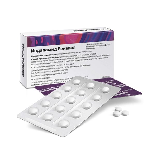 Индапамид Реневал таблетки покрытые плёночной оболочкой 2,5мг №30
