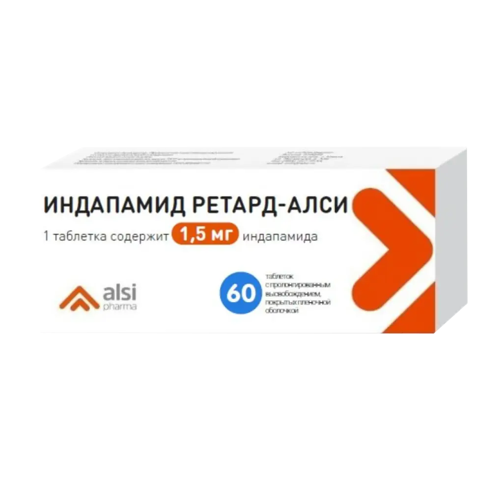 Индапамид ретард-Алси таблетки пролонгированного действия покрытые плёночной оболочкой 1.5мг №60