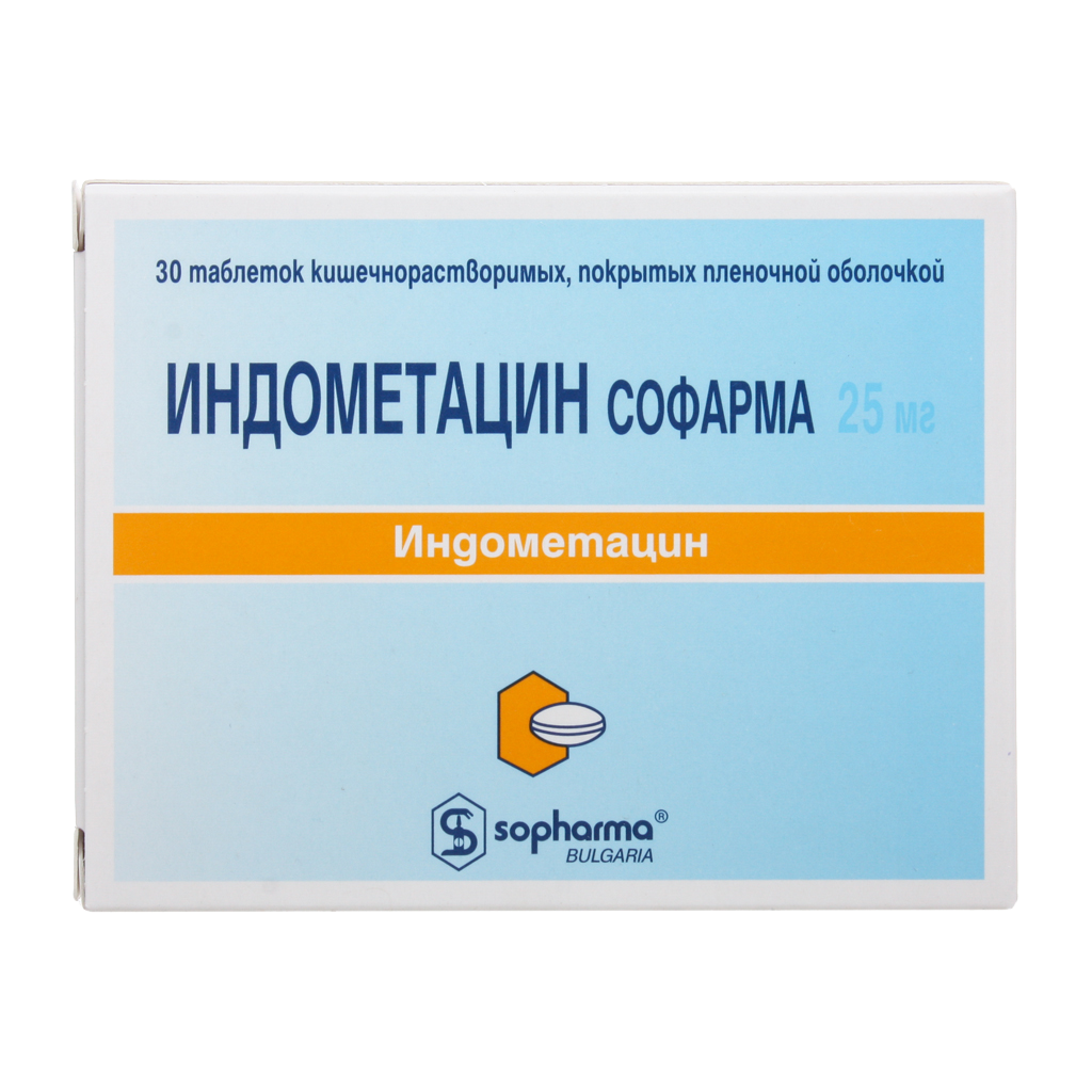 Индометацин Софарма таблетки кишечнорастворимые покрытые пленочной оболочкой 25мг №30