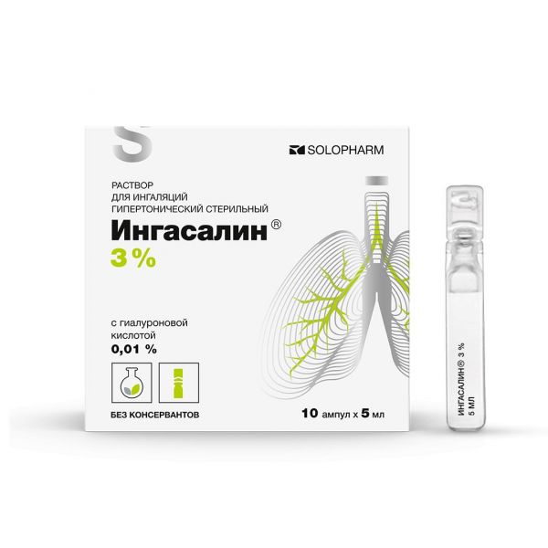 Ингасалин раствор для ингаляций гипертонический стерильный 3% ампулы 5мл №10