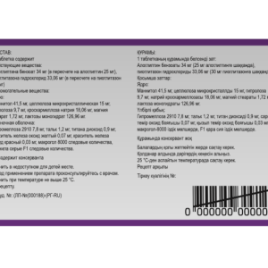 Ядро таблетки Маннитол Целлюлоза микрокристаллическая. Гидроксипропилцеллюлоза. Кроскармеллоза натрия. Магния стеарат. Лактозы моногидрат.