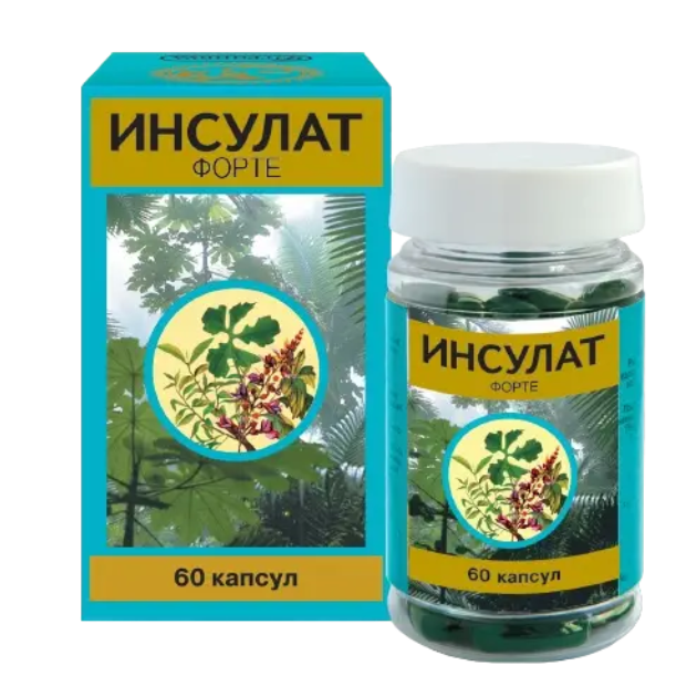 Инсулат - биологически активная добавка к пище - натуральный фитокомплекс из лекарственных трав, способствующих снижению уровня глюкозы в крови за счет уменьшения ее всасывания в кишечнике и улучшающих секреторную функцию поджелудочной железы.
