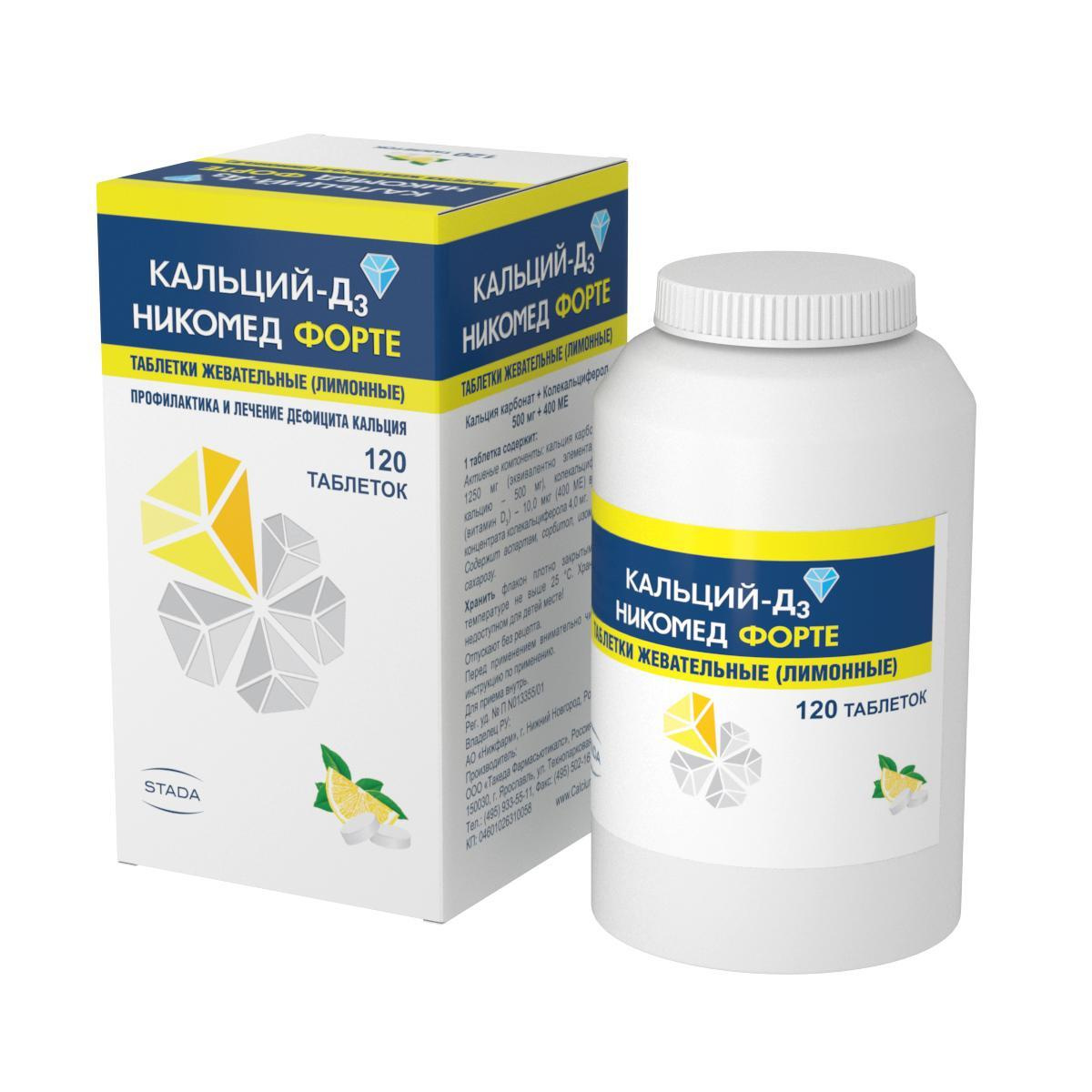 Кальций-Д3 Никомед форте таблетки жевательные лимонные 500мг+400МЕ №120