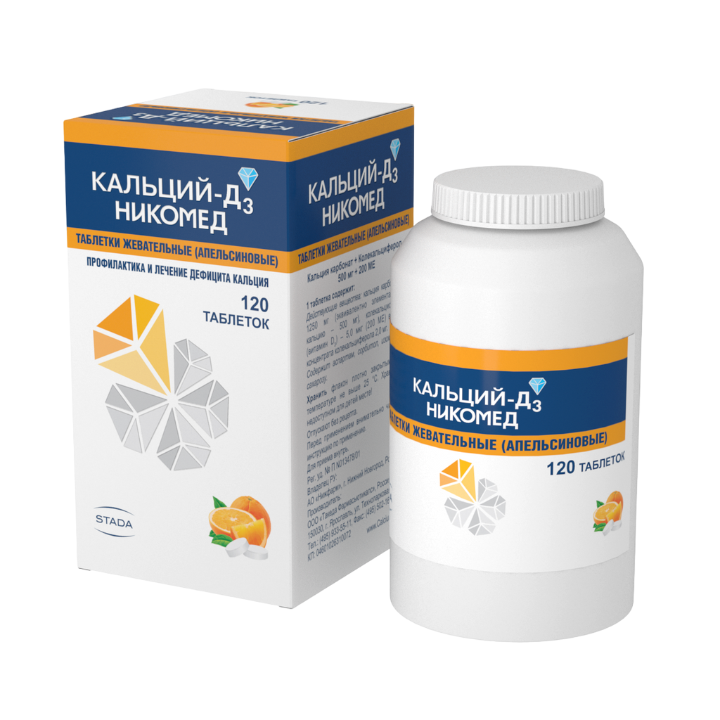 Кальций-Д3 Никомед таблетки жевательные апельсиновые 500мг+200МЕ №120