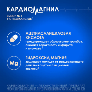 Кардиомагнил таблетки покрытые плёночной оболочкой 150мг+30,39мг №30