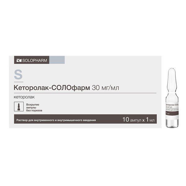 Кеторолак-Солофарм раствор для внутривенного и внутримышечного введения 30мг/мл ампулы 1мл №10