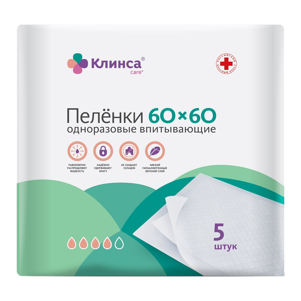 Клинса care пеленки впитывающие одноразовые для взрослых 60x60см №5