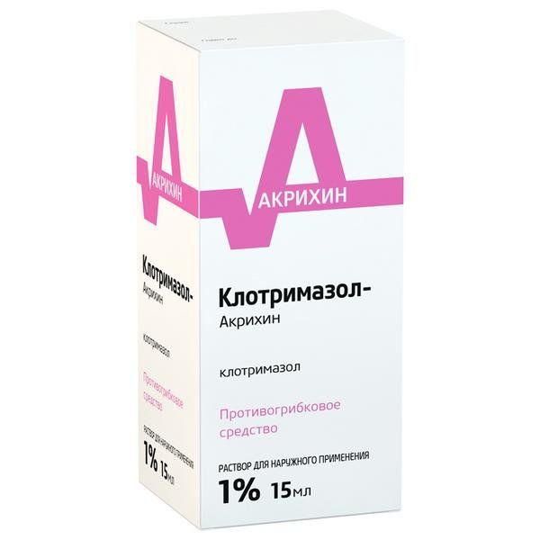Клотримазол-Акрихин раствор для наружного применения 1% флакон 15мл