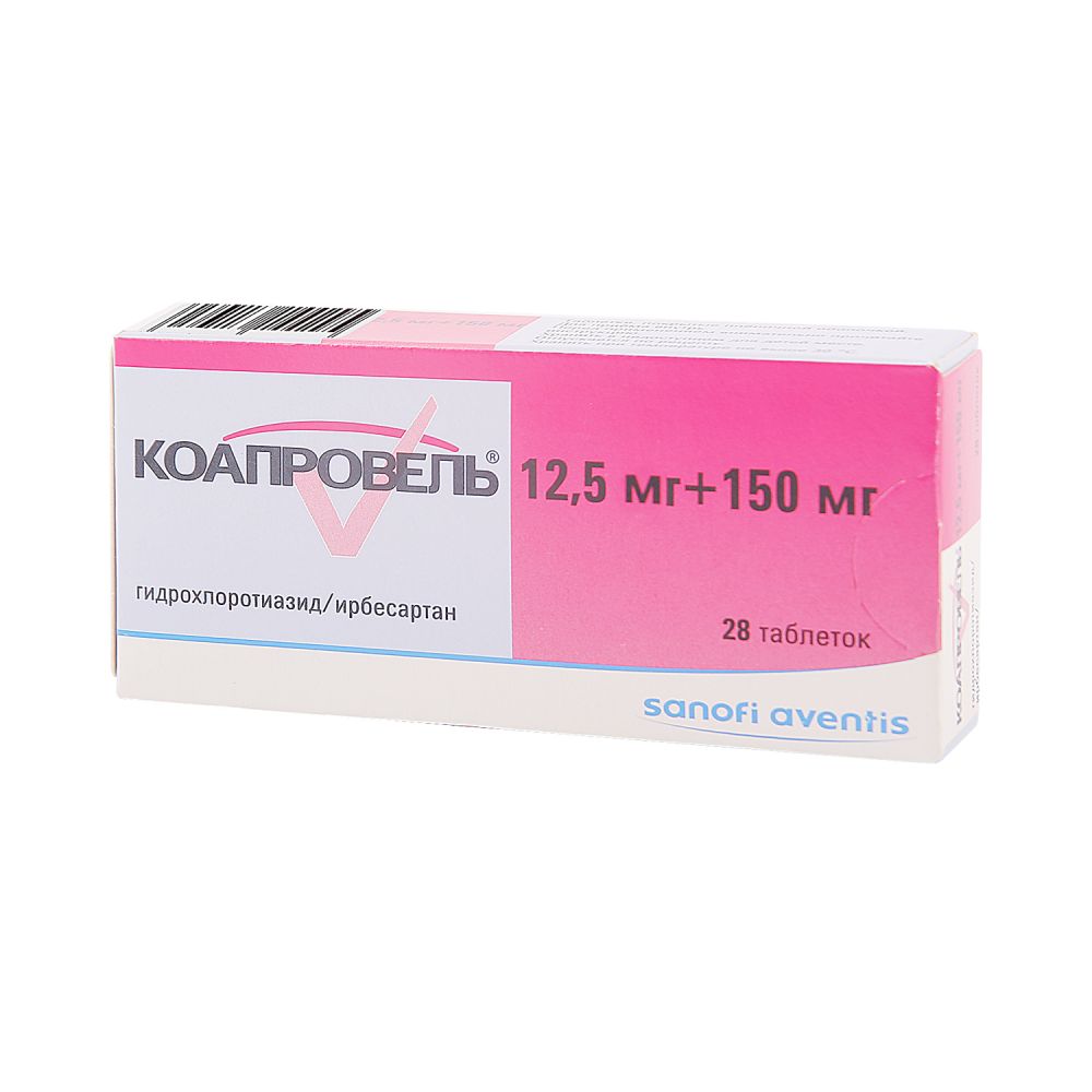 Коапровель® является комбинацией антагониста рецепторов ангиотензина II — ирбесартана и тиазидного диуретика — гидрохлоротиазида. Комбинация этих ингредиентов обладает аддитивным антигипертензивным эффектом, снижая артериальное давление в большей степени, чем каждый из них по отдельности.