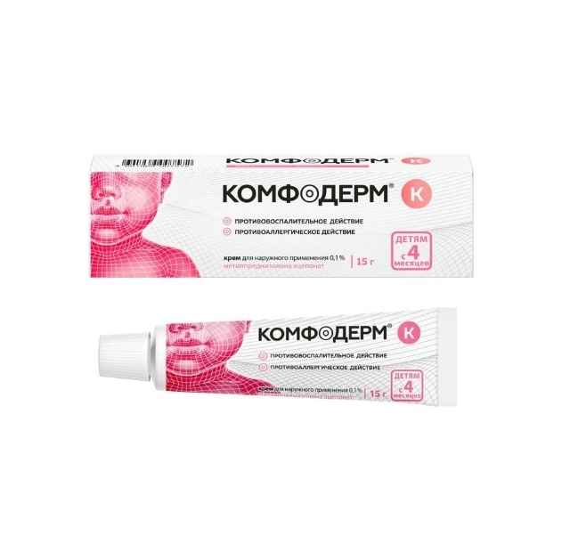 При наружном применении Комфодерм® К подавляет воспалительные и аллергические кожные реакции, также как и реакции, связанные с усиленной пролиферацией, что приводит к уменьшению объективных симптомов воспаления (эритема, отёк, мокнутие) и субъективных ощущений (зуд, раздражение, боль и т.д.).