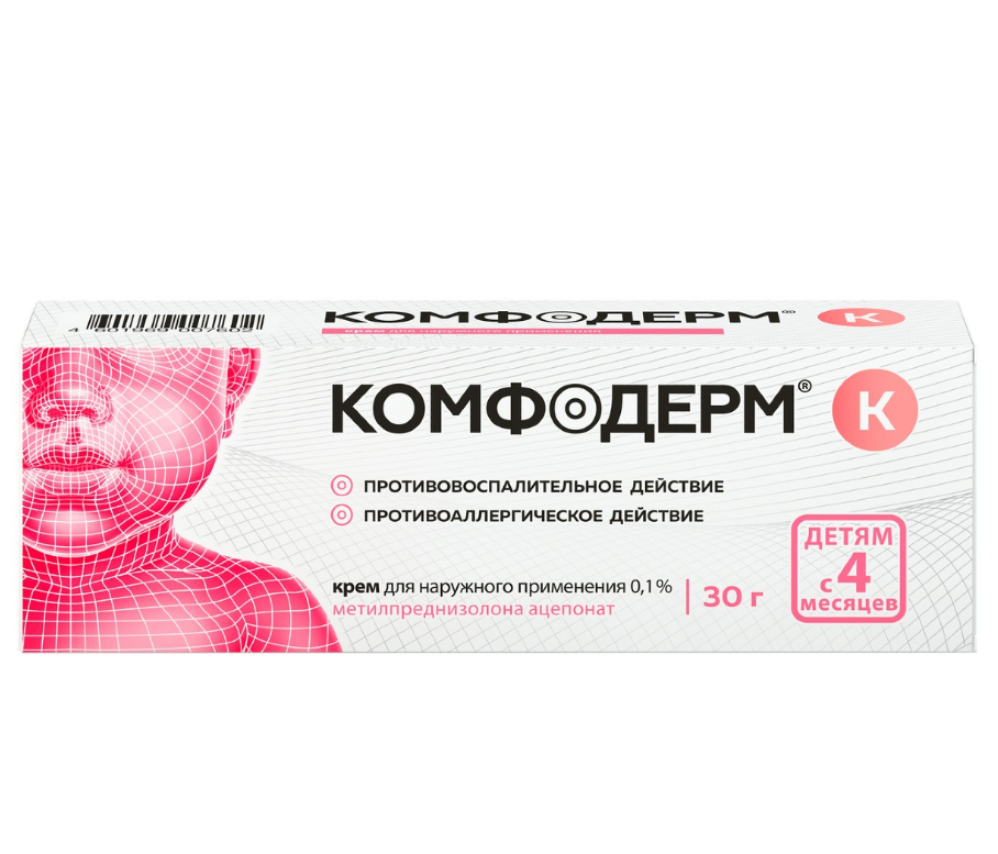 При наружном применении Комфодерм® К подавляет воспалительные и аллергические кожные реакции, также как и реакции, связанные с усиленной пролиферацией, что приводит к уменьшению объективных симптомов воспаления (эритема, отёк, мокнутие) и субъективных ощущений (зуд, раздражение, боль и т.д.).