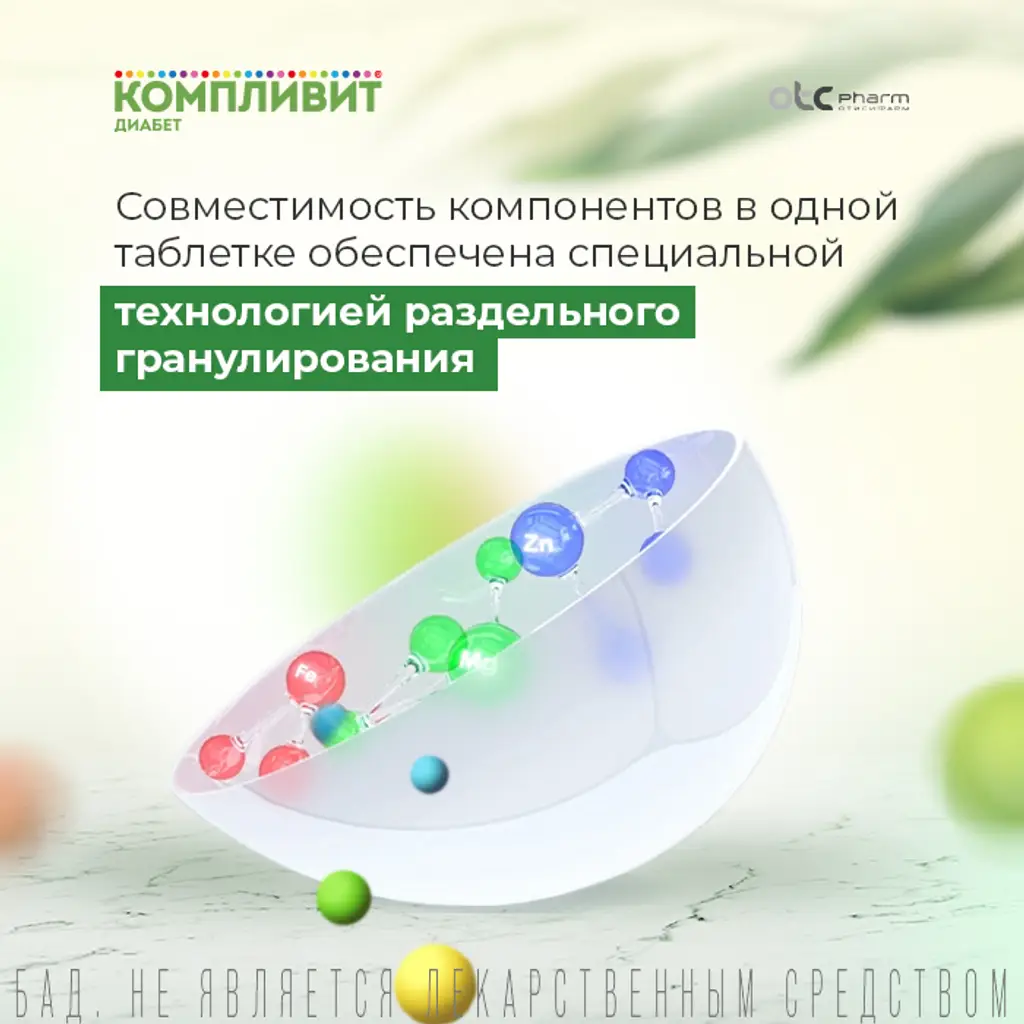 КОМПЛИВИТ® ДИАБЕТ содержит комплекс важнейших витаминов и минералов, а также фитокомпонент - экстракт гинкго билоба.