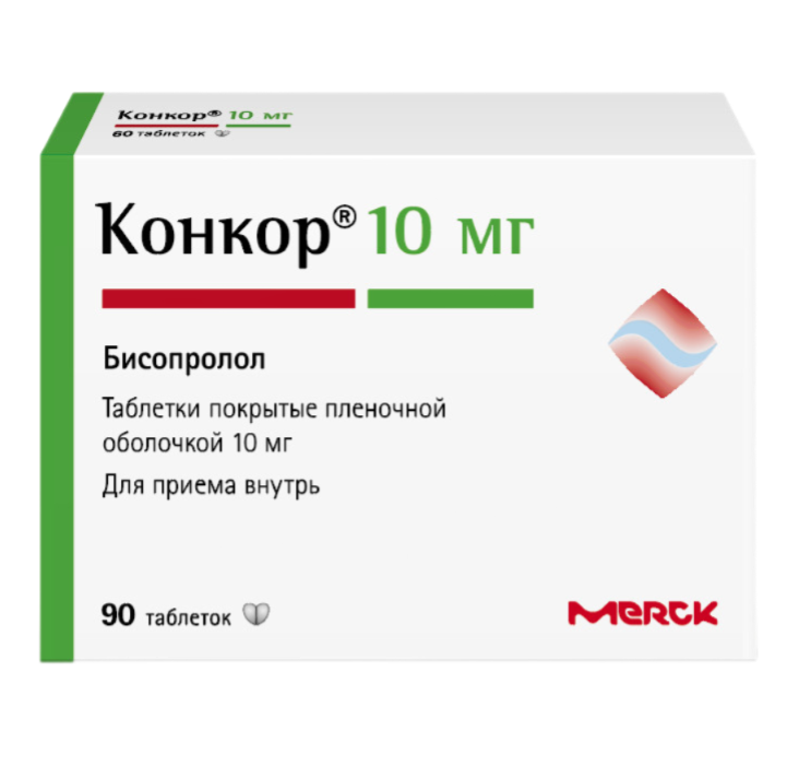 Конкор таблетки покрытые плёночной оболочкой 10мг №90