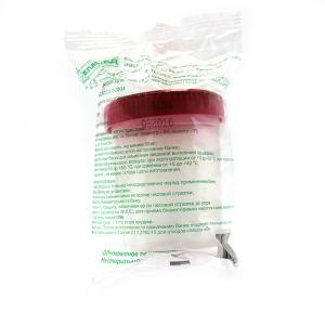 Полупрозрачная полимерная емкость с винтовой крышкой красного цвета, предназначенная для использования в целях сбора, сохранения и/или транспортировки любого вида диагностических образцов (например, мочи, кала, мокроты, слизи, ткани) для анализа и/или других исследований. Это изделие для одноразового использования.