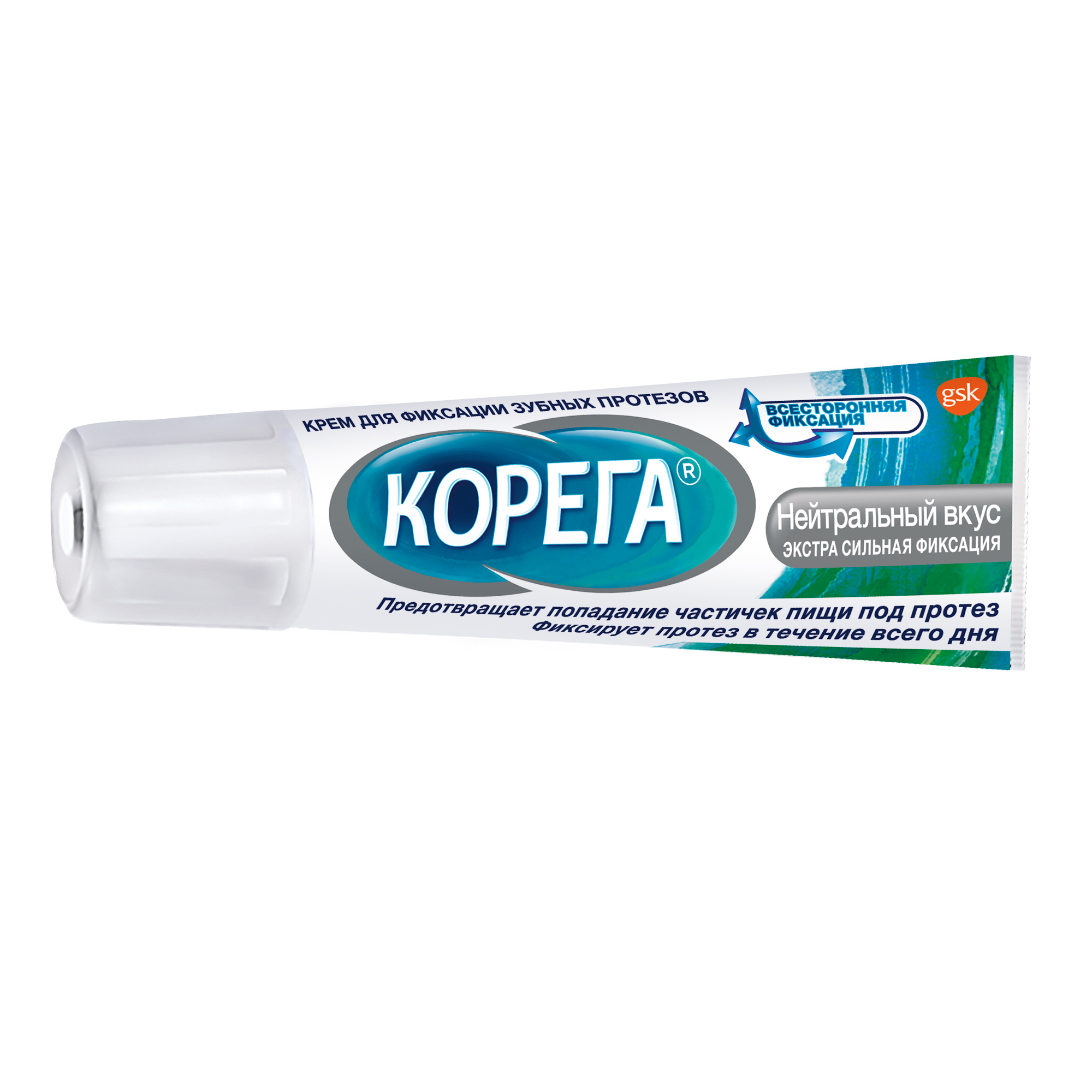 Крем Корега Нейтральный вкус входит в линейку нейтральных средств для фиксации зубных протезов Корега. Не содержит цинк и искусственные красители.