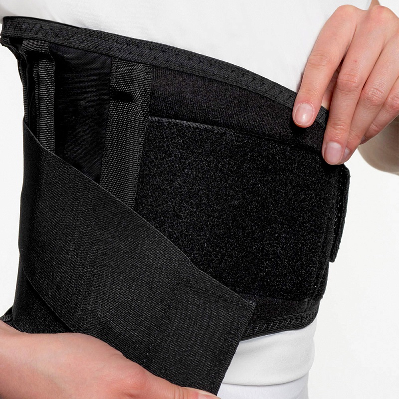 Корсет имеет 2 ленты-стяжки, выполненных из медицинского эластика. Они обеспечивают возможность дополнительной фиксации, позволяют подогнать ортез по фигуре конкретного пациента. Корсет фиксируется посредством удобных застежек типа «велкро» (застежка «липучка»).