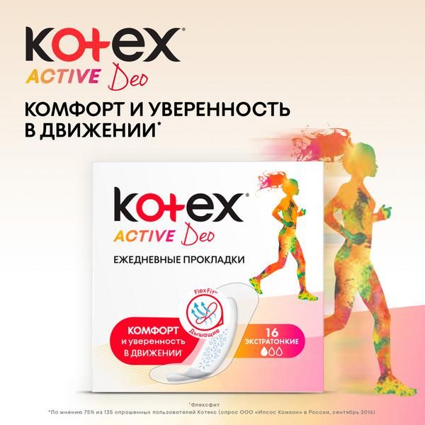 Котекс Active Deo прокладки ежедневные экстратонкие №16