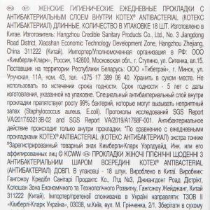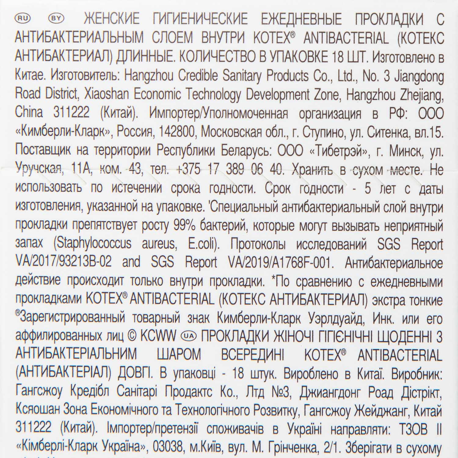 Котекс Antibacterial ежедневные антибактериальные длинные прокладки №18