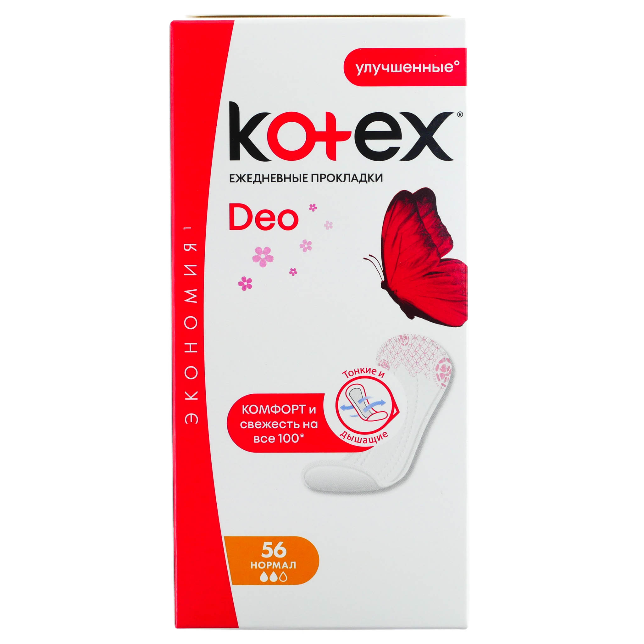 Ежедневные прокладки Kotex® Deo Нормал обеспечивают девушкам ежедневный комфорт на все 100 и качественную защиту белья. Поверхность этих ежедневок мягкая и нежная, она адаптируется к контурам тела и дарит длительное ощущение свежести и чистоты. Это классика среди ежедневных прокладок: они стандартной толщины, дышат, легко и быстро впитывают умеренные выделения. Они прочные и не расслаиваются при использовании. Они ароматизированы, защищают от запаха* и обеспечивают свежесть надолго Экономичная и стильная упаковка с изображением цветка хлопка включает 56 прокладок — выгодное приобретение, которое сэкономит время на походы в магазин и позволит практичной девушке уделить больше времени себе или близким.