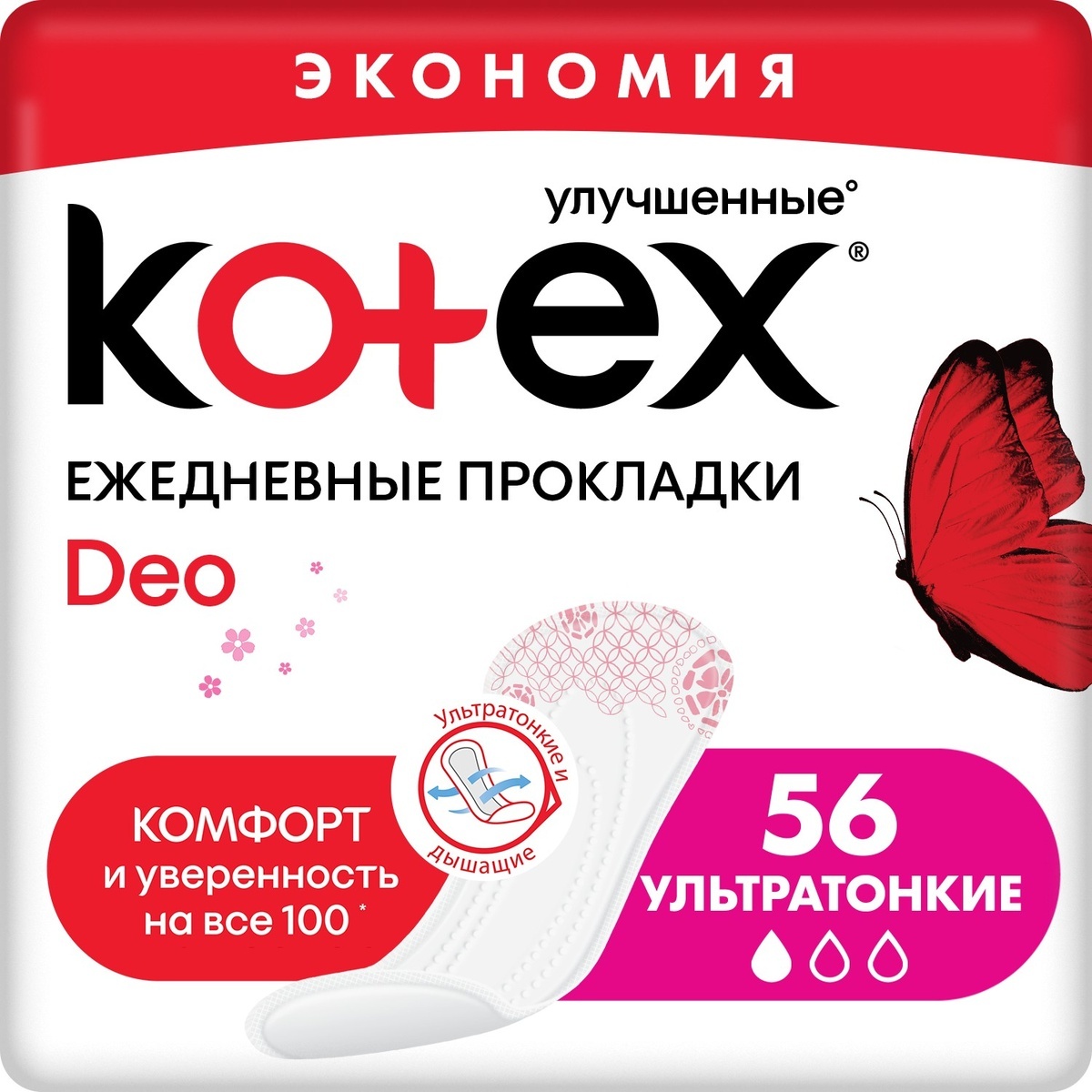 Сколько стоит Котекс Deo прокладки ежедневные ультратонкие №56 - цена и отзывы