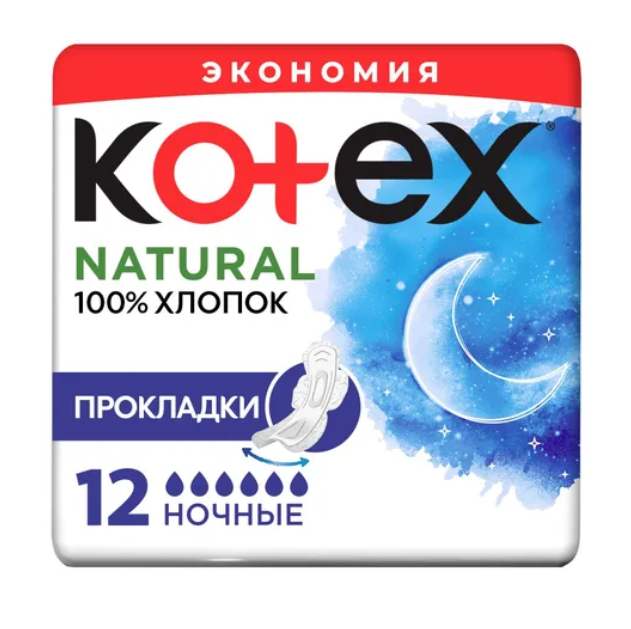 Котекс Natural прокладки ночные №12