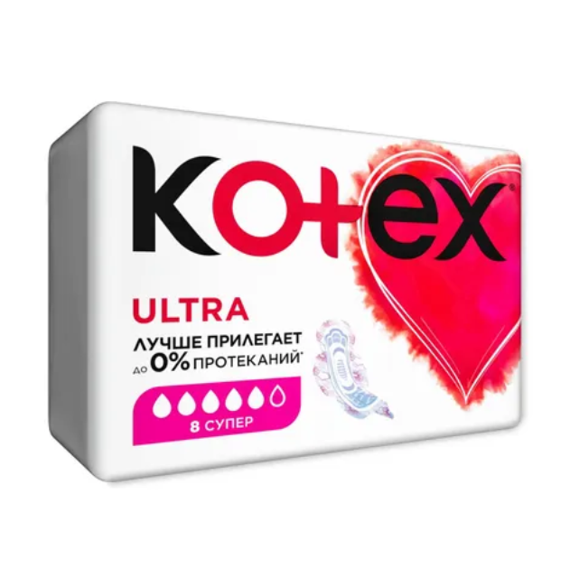 Женские гигиенические прокладки Kotex Ultra СУПЕР НОВЫЕ Kotex Ultra СУПЕР с удлиненным задним краем для обильных выделений. Улучшенная защита и новый стильный дизайн. Обеспечивают комфорт и уверенность до 100%* Прокладка стала более гибкой, чтобы лучше подстраиваться под анатомию твоего тела и защищать от протеканий. ЛУЧШЕ ПРИЛЕГАЕТ до 0% ПРОТЕКАНИЙ* Выбирай упаковку с сердечком! Уникальный 3D центр -быстро впитывает Эластичные желобки - придают прокладке гибкость для защиты от протеканий сзади Подстраивающийся внутренний слой - адаптируется под анатомию твоего тела Покрытие мягкая сеточка для максимального комфорта и сухости кожи Мягкие крылышки, надежно крепятся к белью и не натирают кожу Эстетичная форма прокладки и нежный женственный дизайн добавят удовольствия при использовании Обновленный дизайн упаковки - стильный и современный Выбирай упаковку с сердечком! *Опрос потребителей. Россия. 2019. По сравнению с предыдущей линейкой Котекс Ультра Нормал.