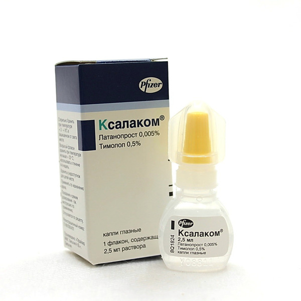 активные вещества: латанопрост — 50 мкг, тимолола малеат — 6,83 мг (эквивалентно 5 мг тимолола)