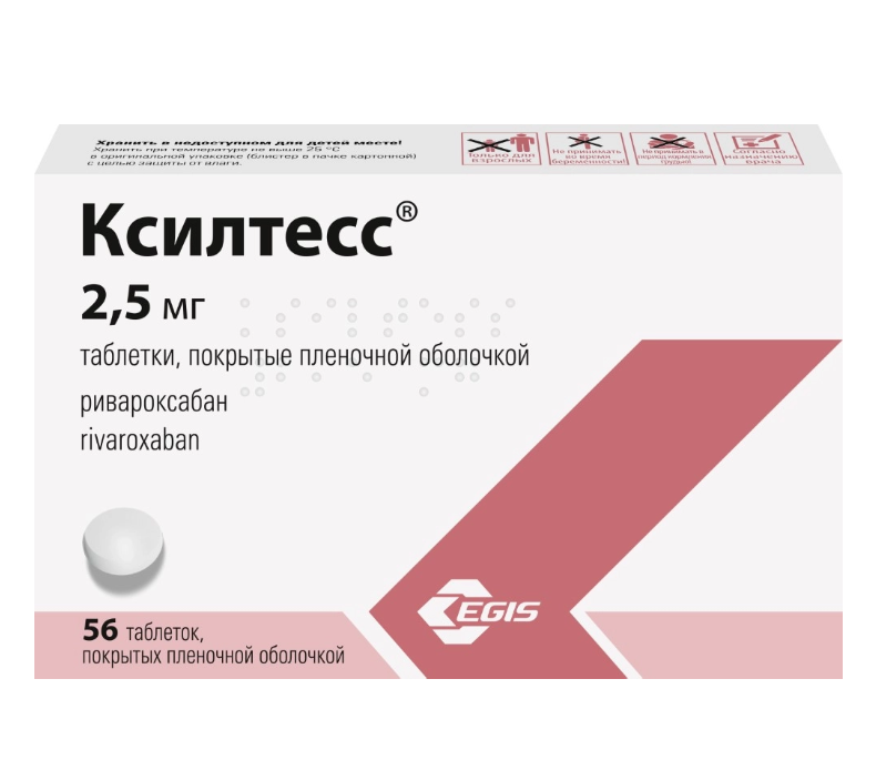 Активное вещество: ривароксабан микронизированный 2,5 мг.